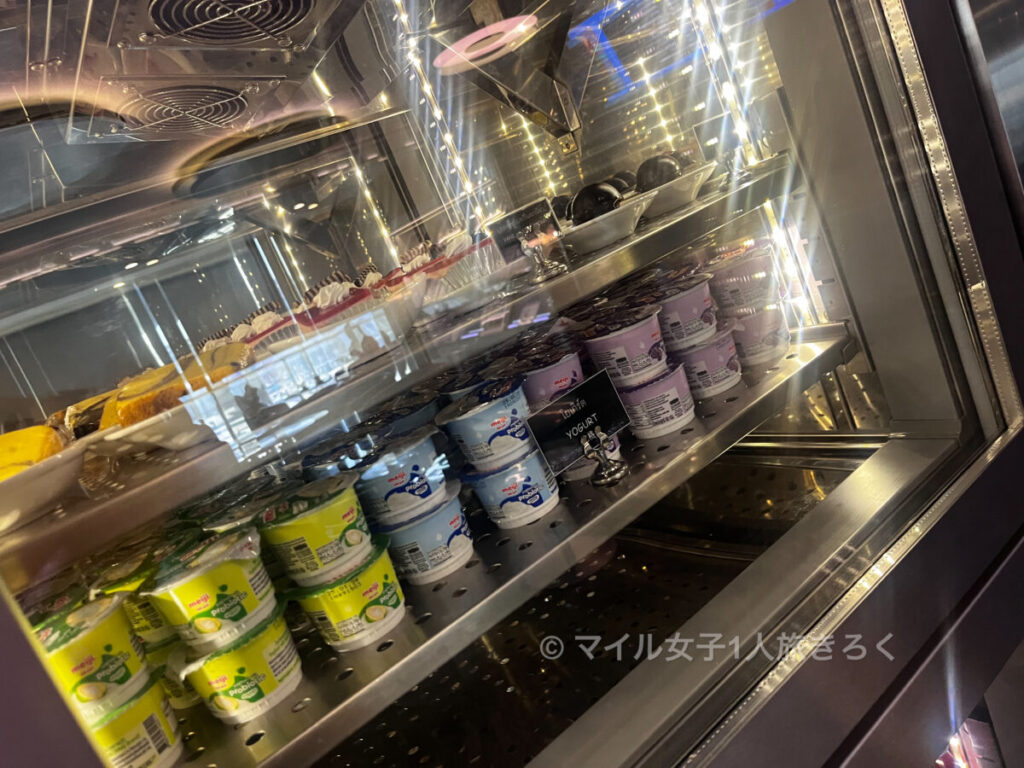 右から、デザートのヨーグルトやケーキ類