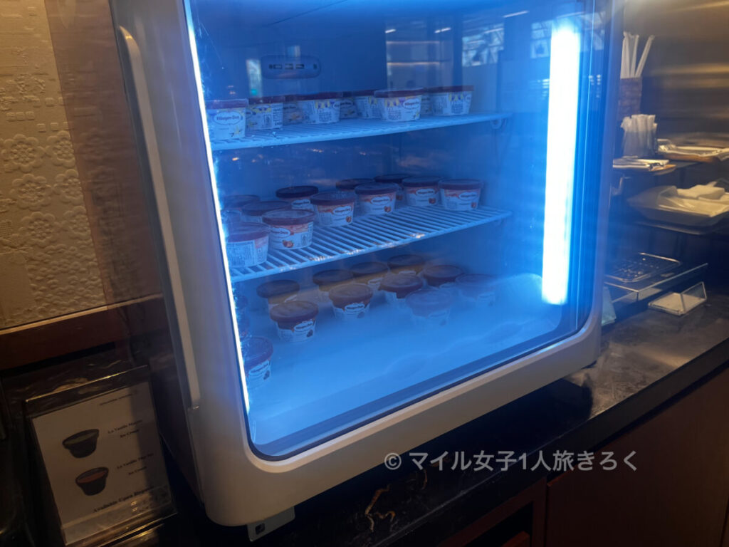 アイスはハーゲンダッツ。バニラ・ストロベリー・チョコがあります。