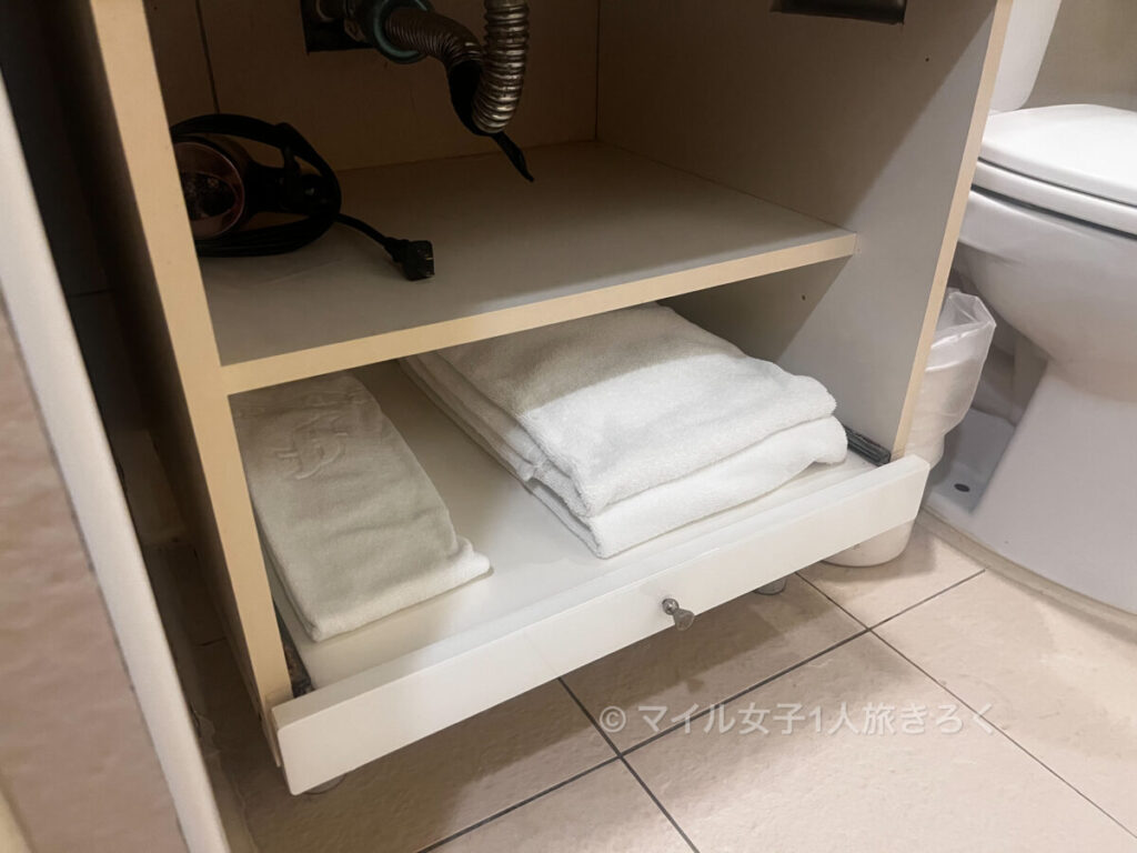 タオルとドライヤー。ドライヤーはちょっとホコリが詰まってて燃えるんちゃうかって心配になりました。