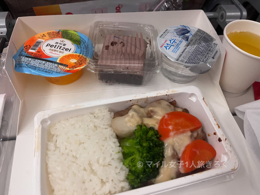 金浦国際空港(韓国)→羽田国際空港(東京) アシアナ航空/OZ1065便 エコノミークラスの機内食