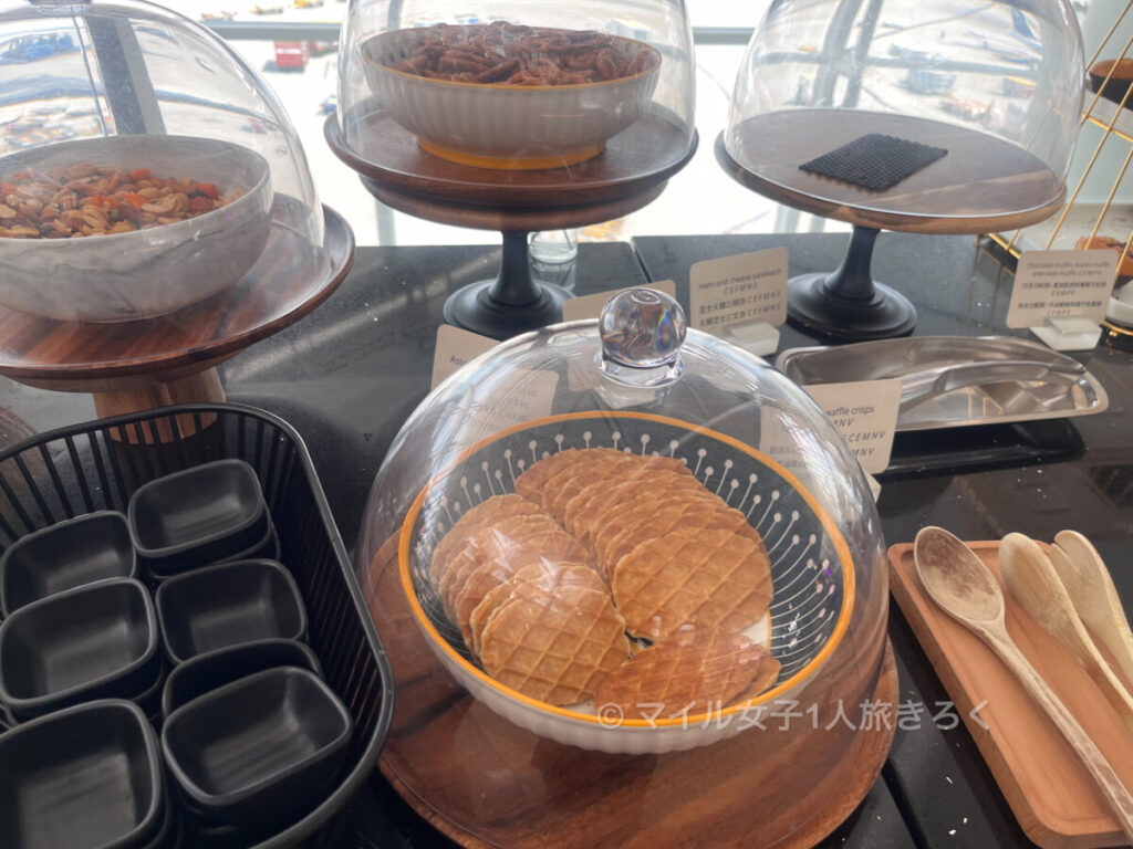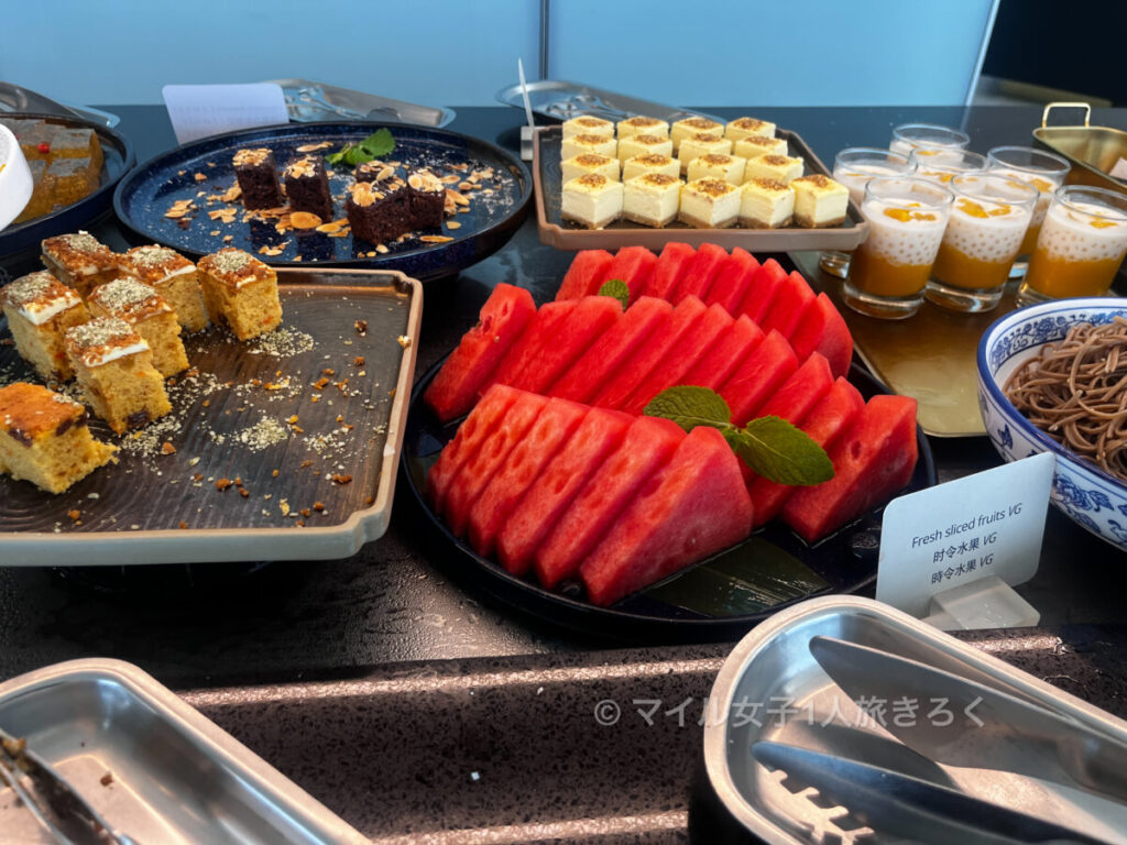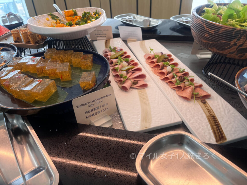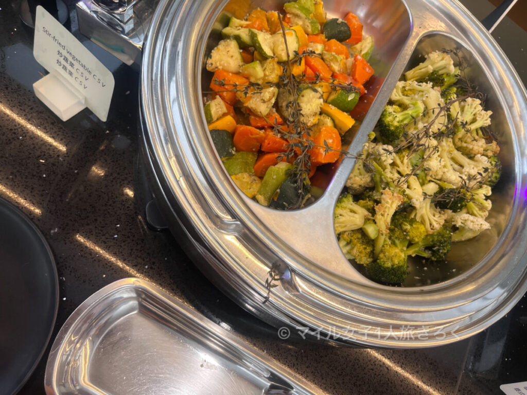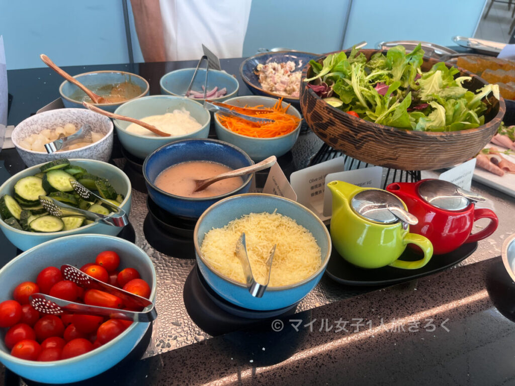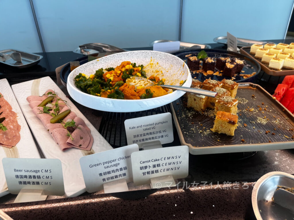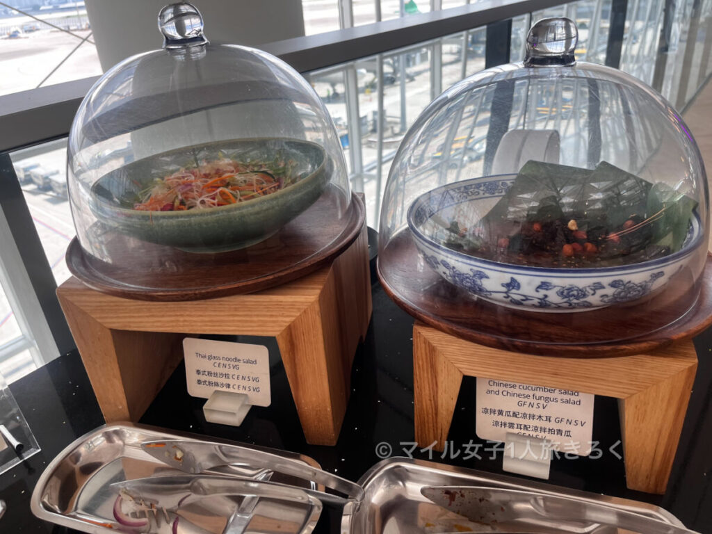 珍しい感じの中華の食事があったり、サラダが豊富だったので、ここもいい感じのラウンジでした。