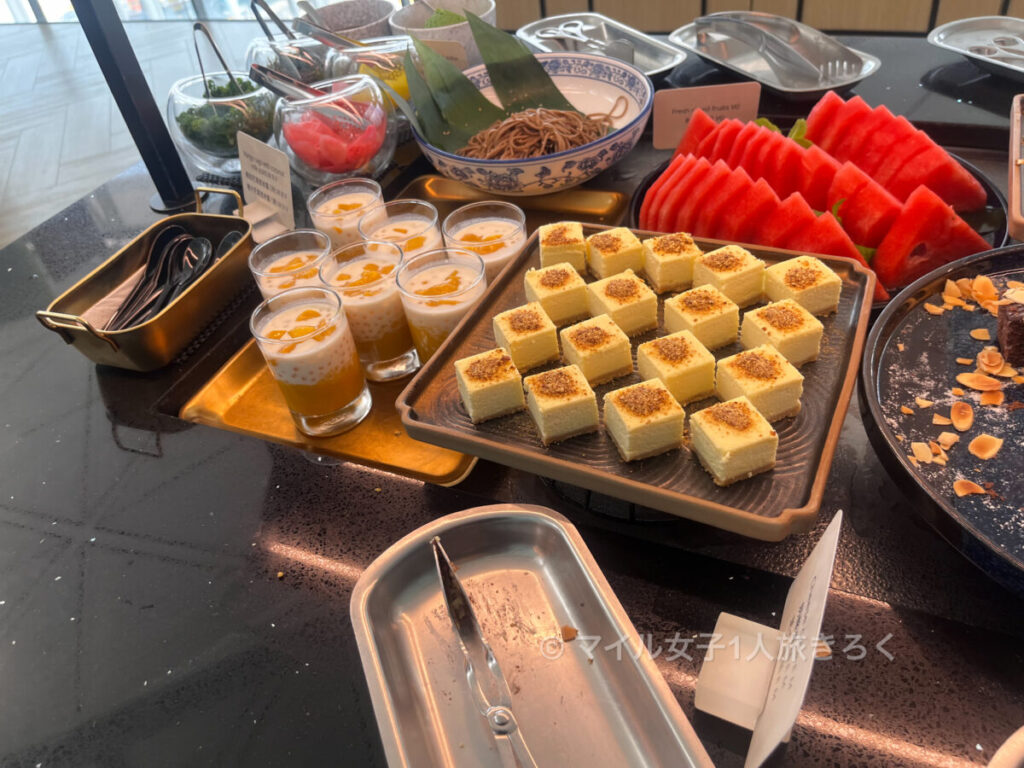 お昼14:00ぐらいに訪問したメニューなのですが、このマンゴーココナッツのプリンがめちゃ美味しかった。マンゴーのスイーツがラウンジでも食べれるとは思わず最高でした。