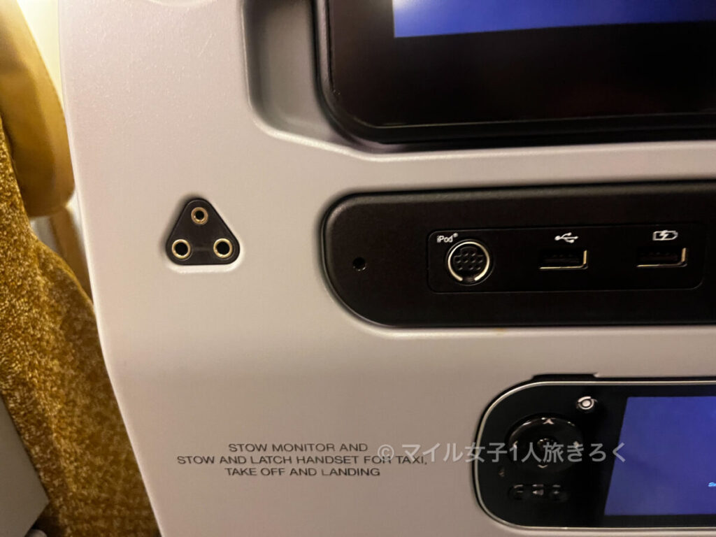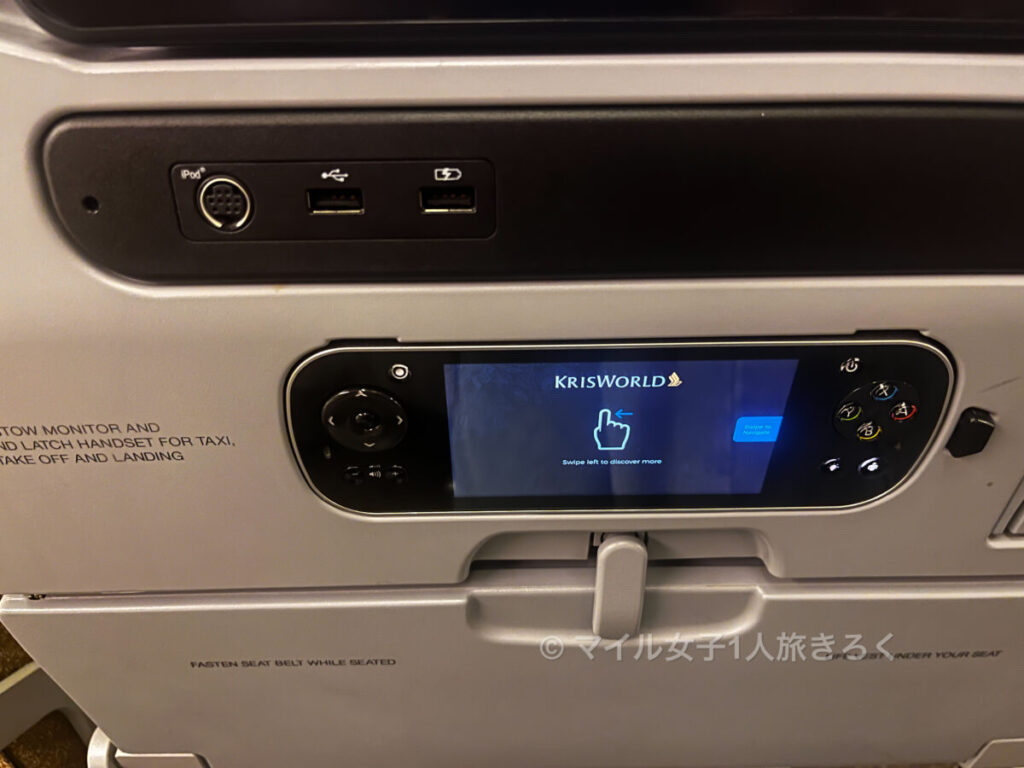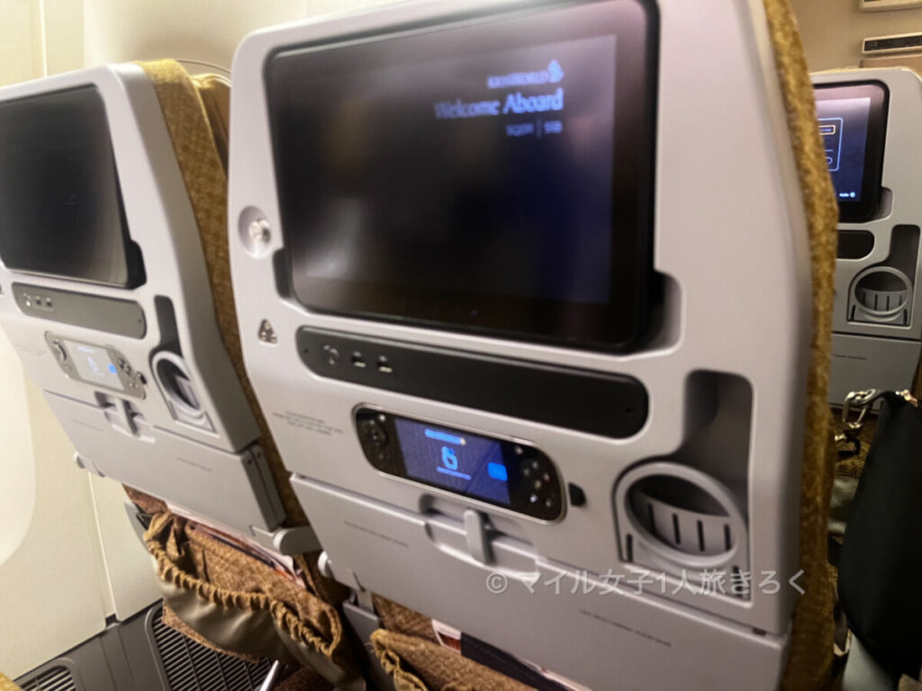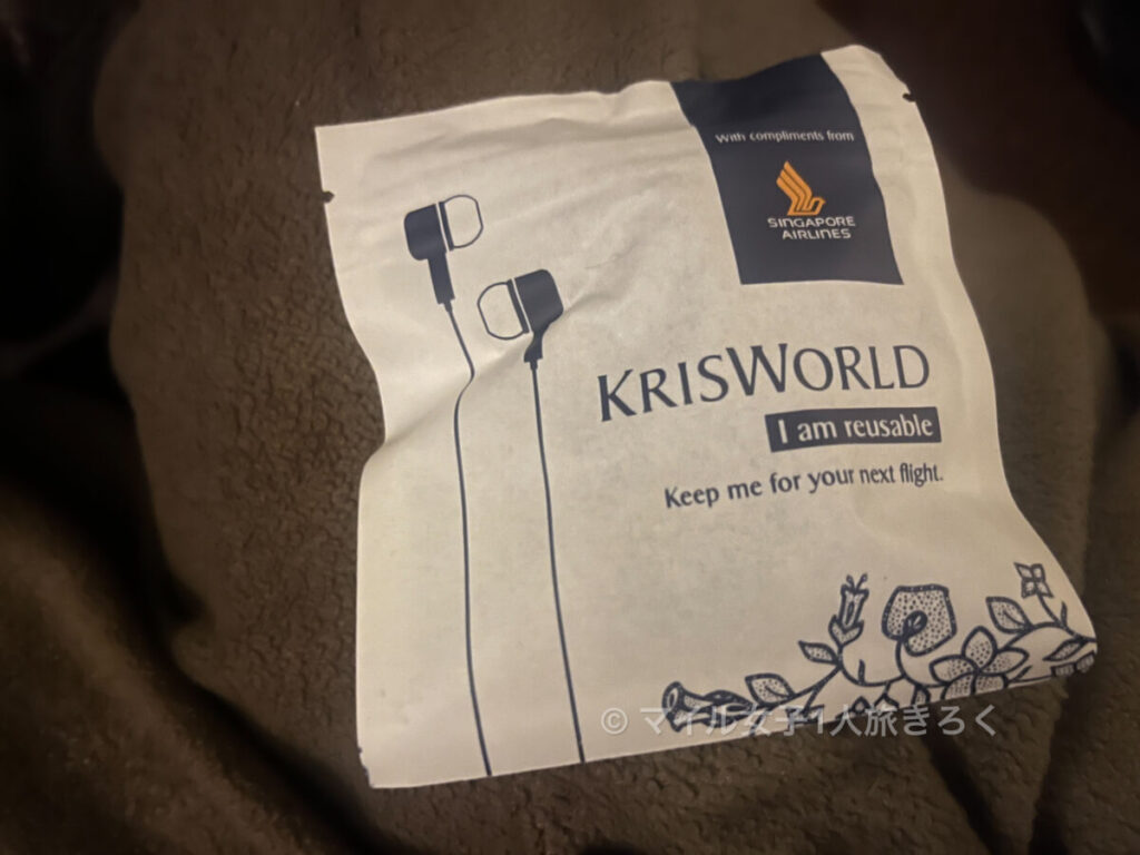 イヤホン。結局映画は見ずに寝てました。機内が基本真っ暗だったのと、周りも寝ててモニターが明るい人もほぼいなかったのもあり、私もたまにフライトマップは見たけど眠すぎて寝てました。