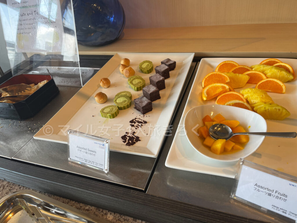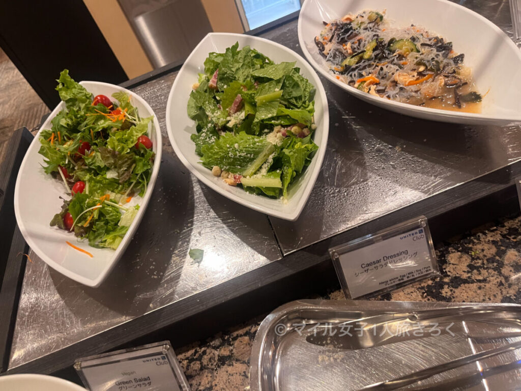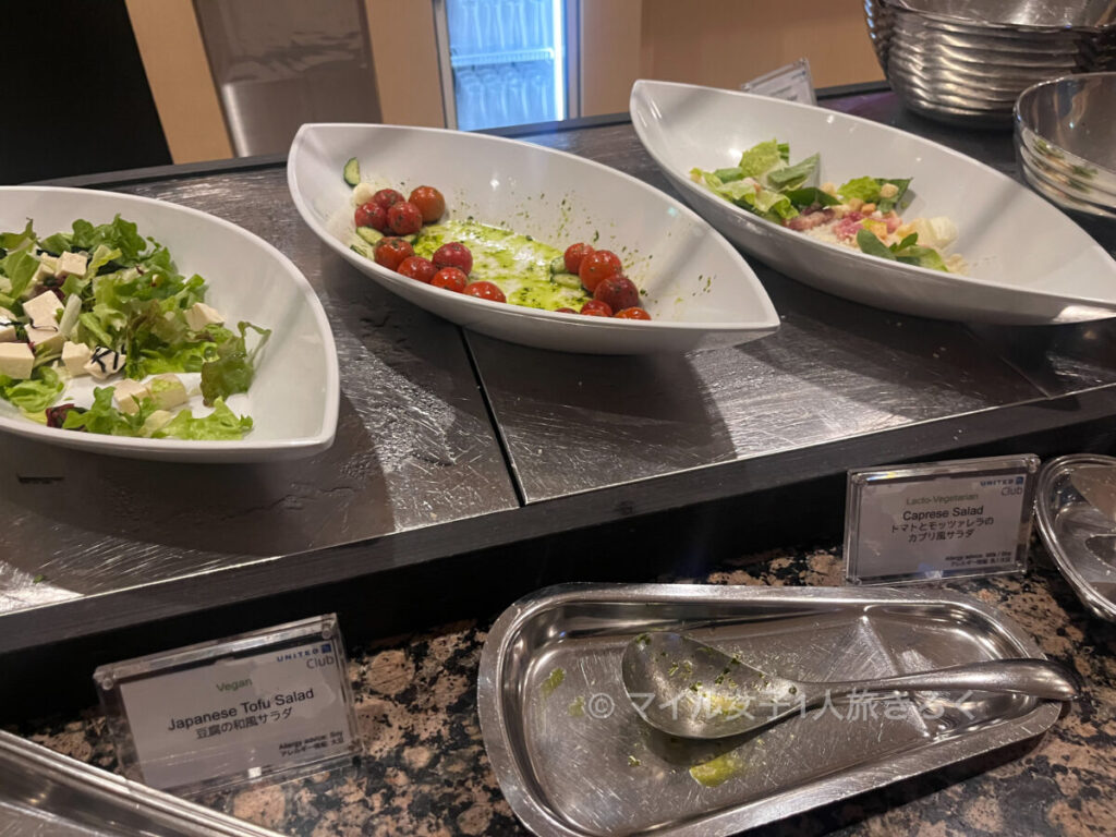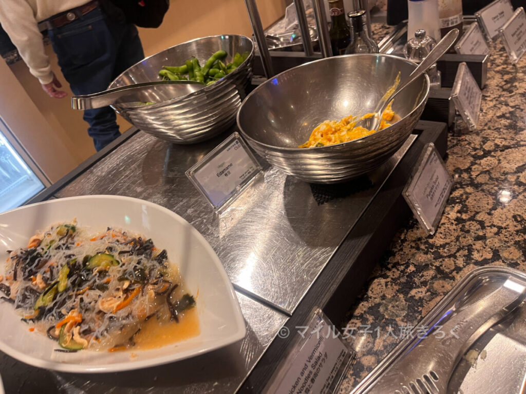 サラダ、デザート、ホットミール、お酒のおつまみなどANAラウンジより豊富な印象。