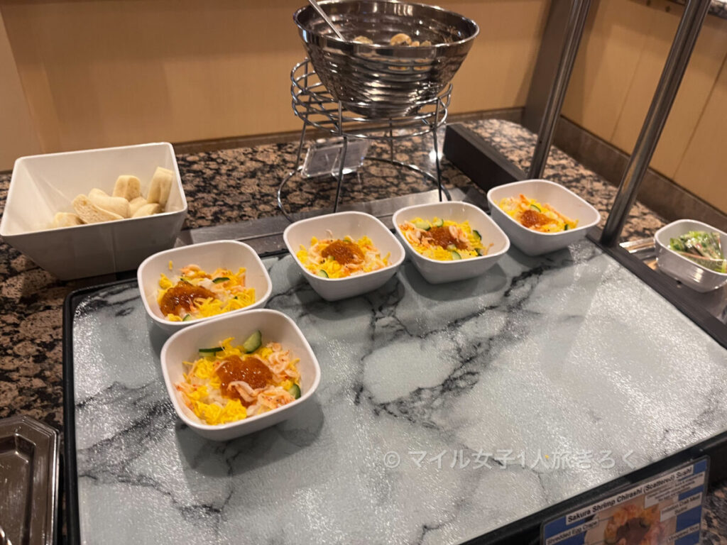 このラウンジのパンの種類の多さが好きだったんですけど、時間なのかそもそもなのかわからないのですが、パンコーナーがなくなっててちょっとショックでした。