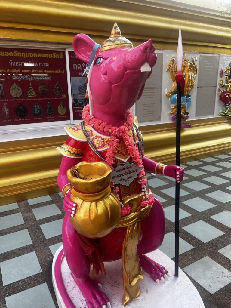 ピンクガネーシャはちょっと行きにくいのですが、ネズミの耳元で願い事をささやくという少しユニークな参拝方法で、タイでも人気のパワースポットとして多くの人が訪れています。