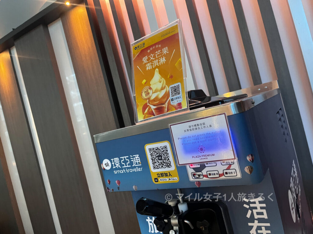 また、プラザプレミアムラウンジのAの方にもこのソフトクリームマシンがありました(第一ターミナルの方は2箇所ともなかったです)
