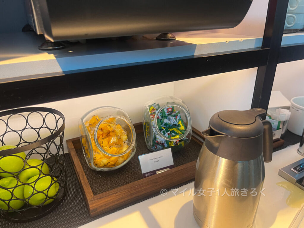 お菓子類。そういえばこれは他のプラザプレミアムラウンジで見なかったかも。