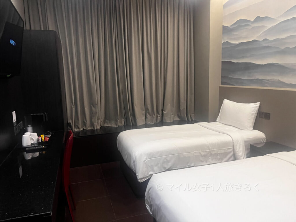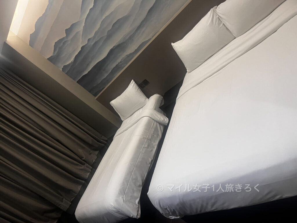 謎にトリプルでした。そして、私の部屋はシティビューだったので、朝はカーテンを開けたりしてました。